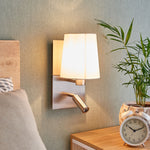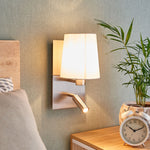 A luminária de parede Aiden possui um abajur de tecido branco e uma lâmpada de leitura LED integrada. A Aiden é perfeita para quartos, podendo ser instalada ao lado da cama ou num sofá, facilitando o acesso a estas áreas. A combinação do candeeiro de tecido com a lâmpada de leitura ajustável é muito prática. O candeeiro de tecido branco proporciona uma luz agradável e aconchegante para relaxar. A lâmpada de leitura LED, compacta e cilíndrica, pode ser girada e inclinada conforme a necessidade, oferecendo uma iluminação direcionada e focada, ideal para a leitura noturna. Ambas as fontes de luz podem ser controladas separadamente, com interruptores localizados na parte inferior da luminária. Lâmpada de leitura: - branco quente (3000 K) - 210 lúmens