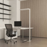 O candeeiro de pé LED Timon apresenta um design moderno que se integra perfeitamente na estética de qualquer escritório ou espaço de trabalho. Oferece iluminação tanto para cima como para baixo. Com a sua fonte de luz LED integrada, este candeeiro de pé combina estilo e funcionalidade, criando um ambiente inspirador e estimulante que aumenta a produtividade. A função de regulador de intensidade integrada permite ajustar individualmente a intensidade da luz para criar o ambiente perfeito de acordo com a hora do dia ou as necessidades de trabalho (5% - 100%). Esta função de regulador de intensidade é controlada por um interruptor rotativo localizado na base da luminária.