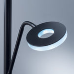 Luminária de chão LED Dent com iluminação indireta: Função CCT integrada para iluminação personalizada. O candeeiro de pé LED Dent com iluminação indireta e braço de leitura é um complemento valioso para qualquer divisão. Com o seu design moderno em elegante preto, integra-se perfeitamente na decoração de salas de estar, escritórios ou salas de jantar. A função CCT integrada permite ajustar a temperatura de cor da luz de acordo com as suas necessidades, desde tons quentes que criam uma atmosfera aconchegante até tons mais frios que promovem a concentração e a produtividade. A fonte de luz LED integrada é energeticamente eficiente e oferece uma solução de iluminação sustentável. A luminária de chão possui um regulador de intensidade, permitindo controlar com precisão a intensidade da luz e, assim, adaptar as condições de iluminação de forma ideal a qualquer situação. O braço de leitura adicional do candeeiro de pé Dent proporciona luz direcionada para os momentos em que precisa de se concentrar no trabalho ou ler de forma descontraída. A combinação da fonte de luz principal com a luz de leitura faz deste candeeiro de pé com iluminação indireta um elemento de iluminação multifuncional que satisfaz tanto as necessidades práticas como estéticas.