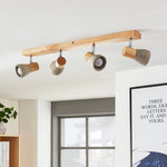 Foco Lindby Filiz, 4 lâmpadas, 77 cm, madeira, betão, E14
